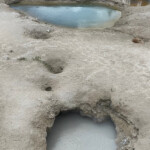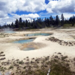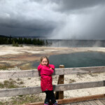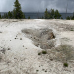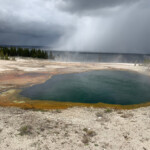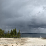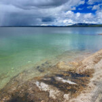 The stormy weather brought us some snow flurries this morning. We braved the weather and went to West Thumb Geyser Basin. By the time we got there the rain and snow had gone away. The boardwalk around the hot springs an easy hike.