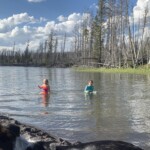 We ended up going to a place we had gone fishing before without David. If it was a river I would call it a sand bar, but since we were at the lake, I am guessing that it is called a spit? There are no signs designating the area and the maps do not give it name. So I call it, “That long narrow strip of sand between Lake Village and West Thumb past Pumice Point just north of Anglers Bluff.” I guess we could give it our own private name. I know, how about, “The Strip.”